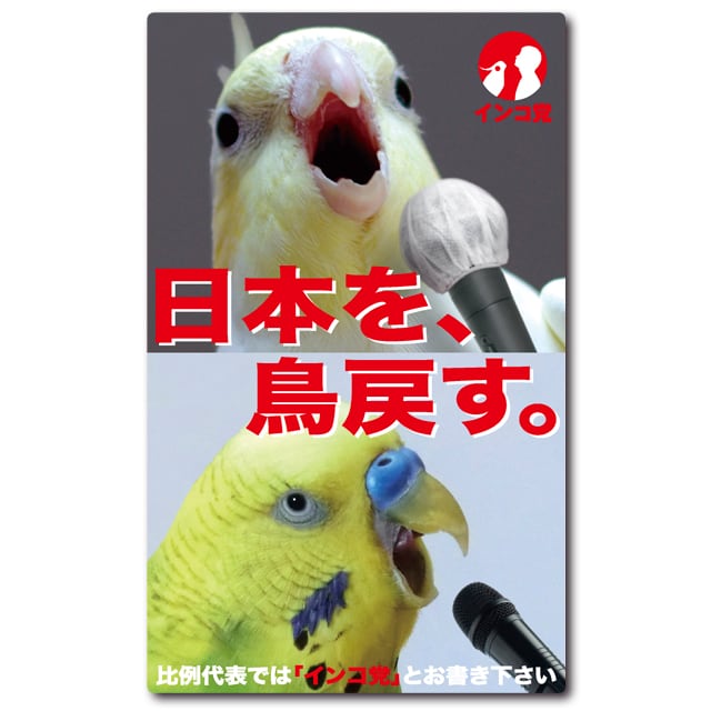 ICカードステッカー「インコ党、日本を鳥戻す」