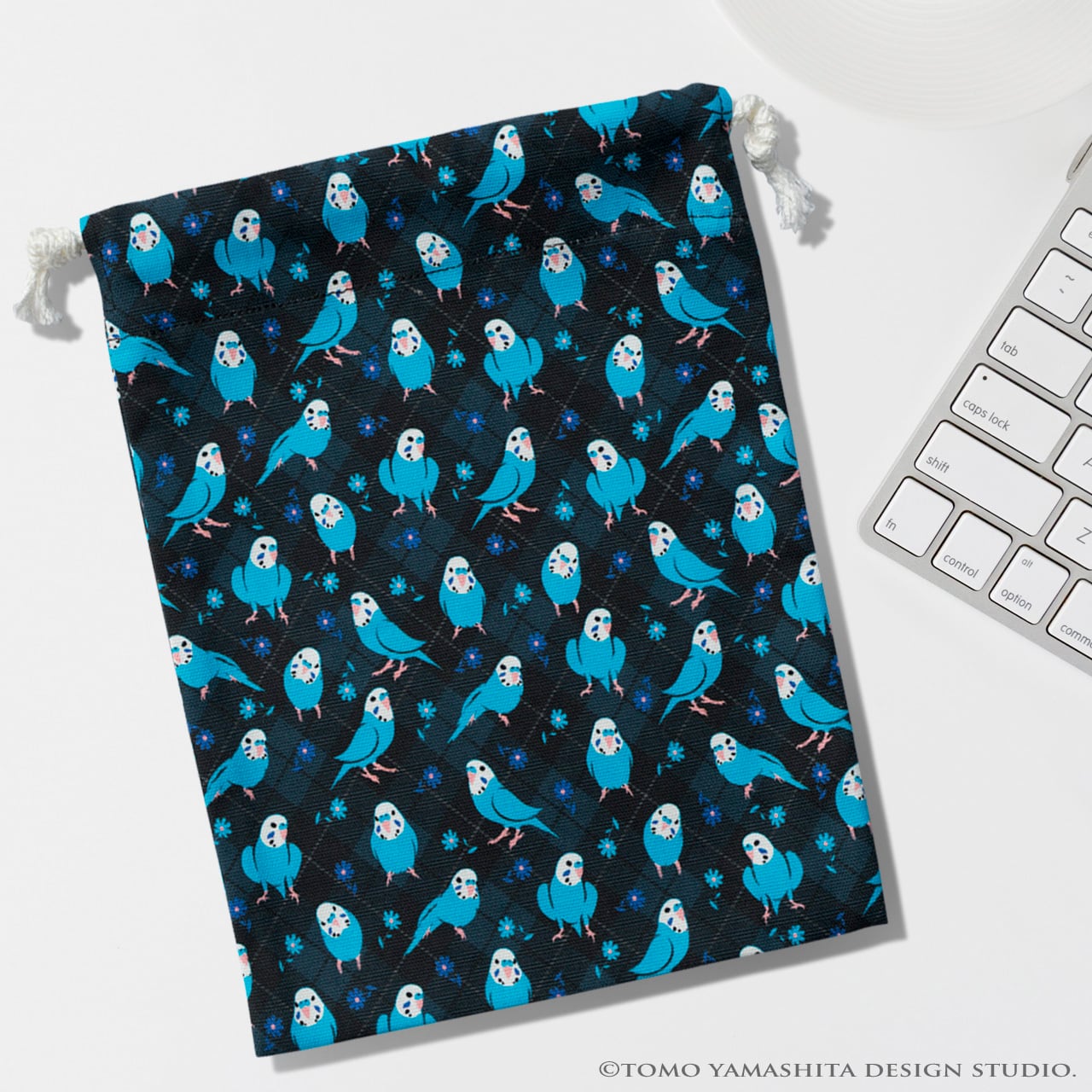 花とセキセイインコのオリジナルデザイン生地で作った巾着袋です
